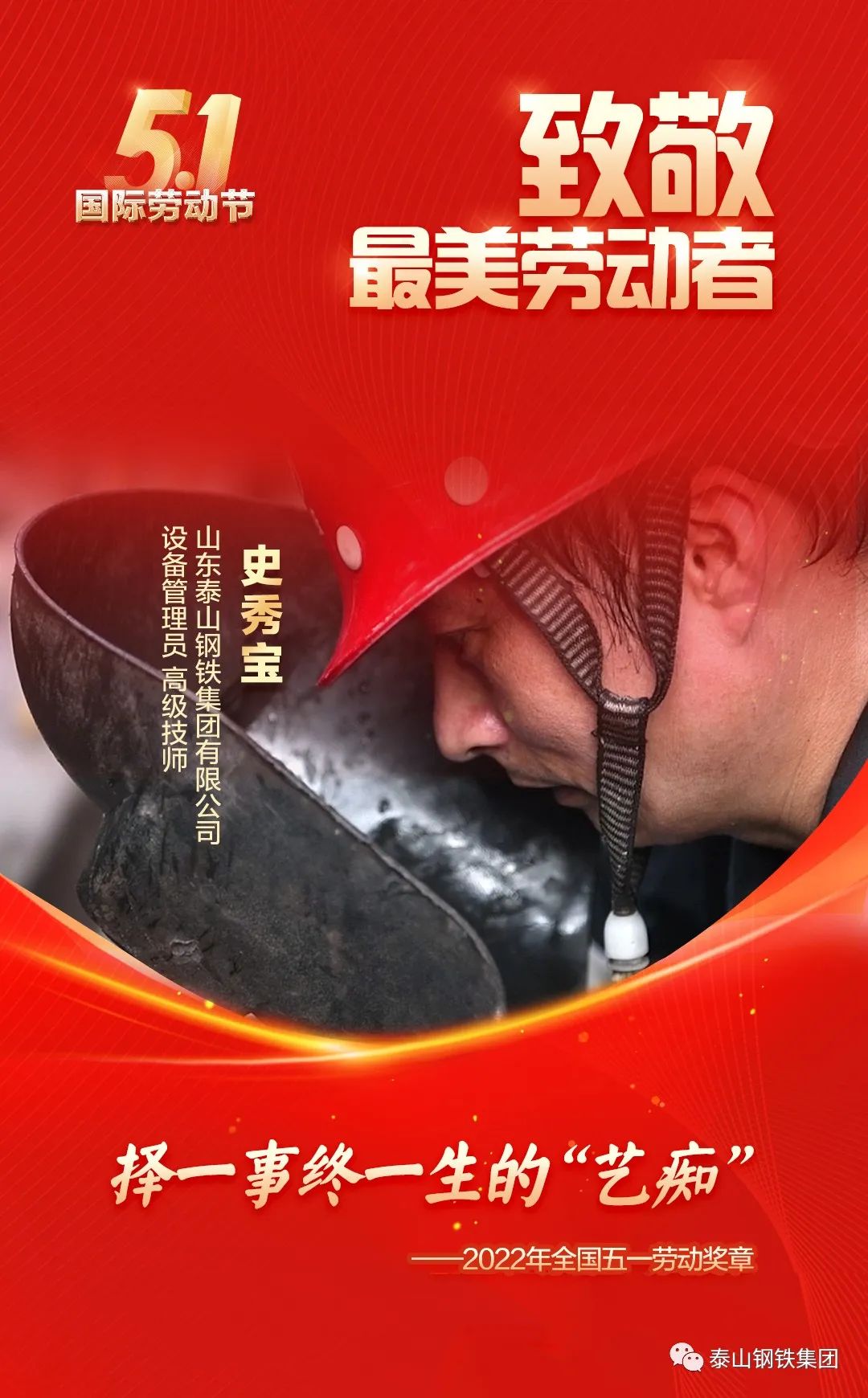 泰山钢铁集团不锈钢事业部设备管理员、高级技师史秀宝荣获全国“五一”劳动奖章。