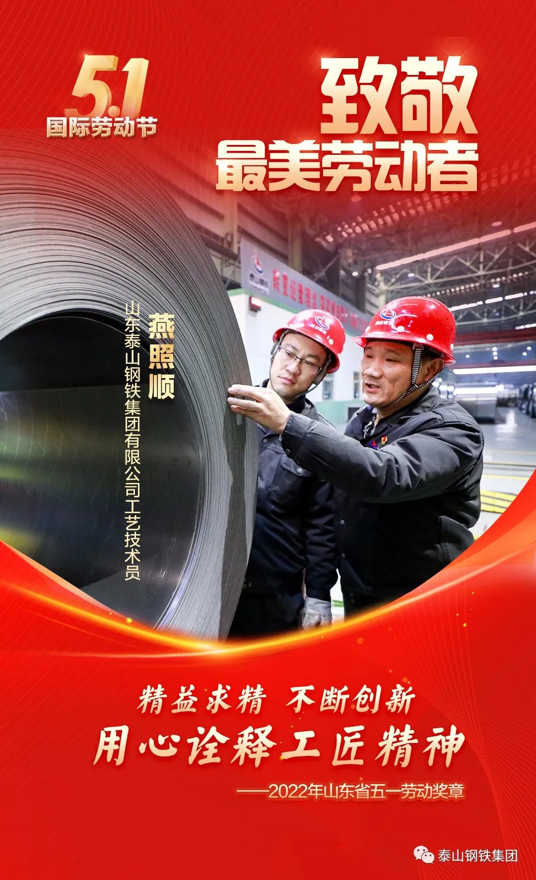 泰山钢铁集团冷轧部工艺技术员燕照顺(图左1)荣获山东省“五一”劳动奖章,2021年度第四届“莱芜工匠”荣誉。