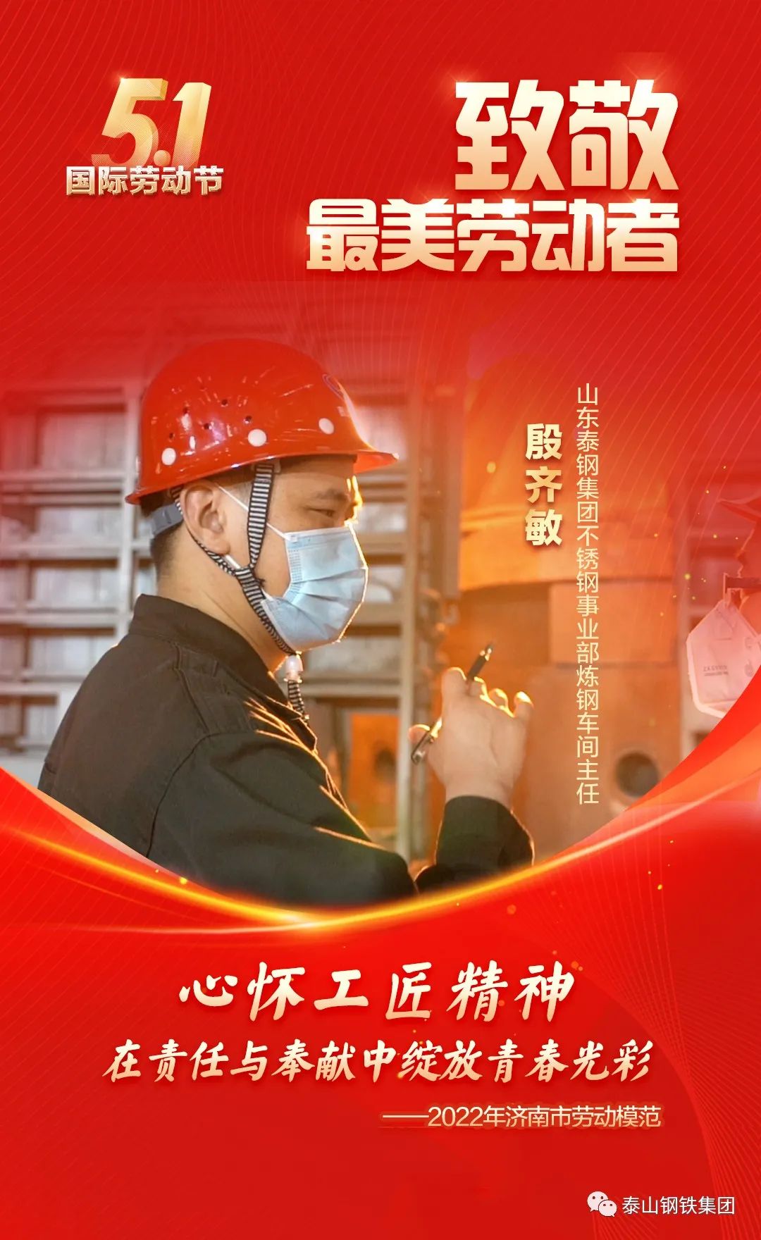 泰山钢铁集团不锈钢事业部炼钢车间主任殷齐敏荣获2022年济南市劳动模范,2022年“莱芜最美职工”荣誉。