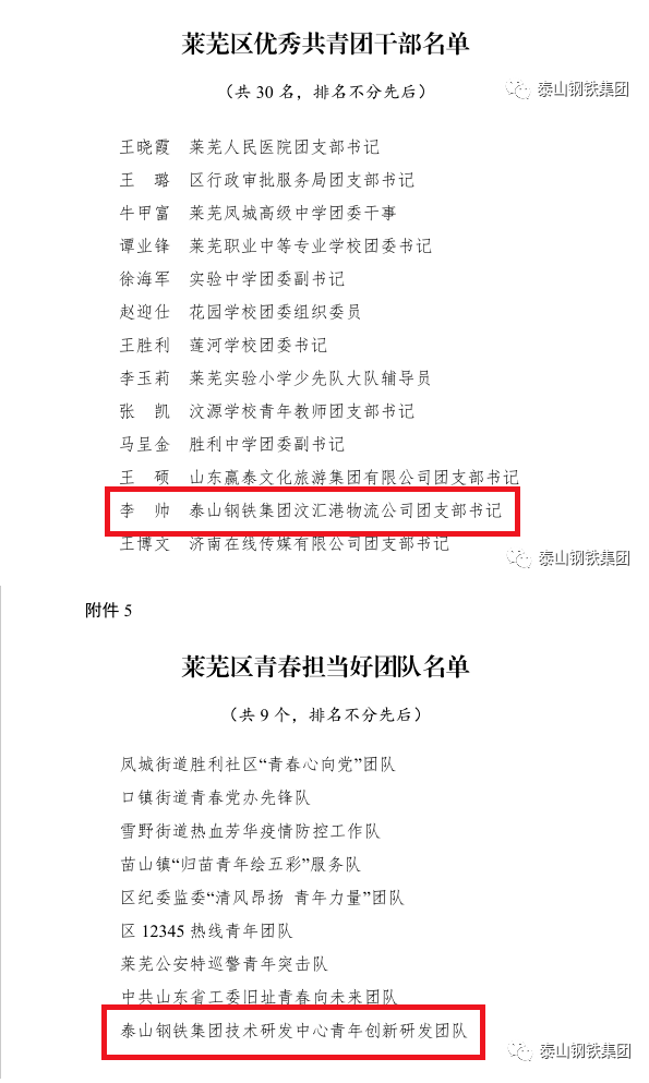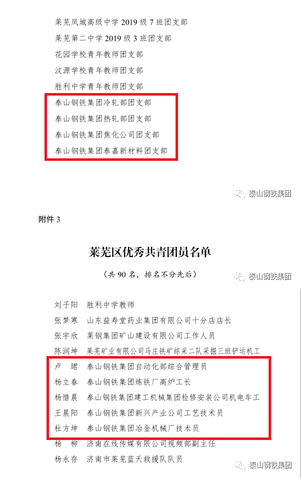 泰山钢铁集团一批团组织、团员青工得到上级表扬!