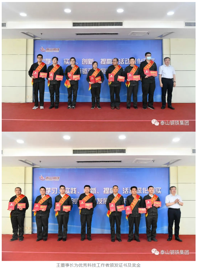“衣着朴素、言语朴实、工作扎实。”“虽然大家身处不同岗位,从事不同的工作,但都对科技工作始终满腔热忱、精益求精、奋斗不止。”“正是因为有一大批优秀科技人才,开拓进取、兢兢业业,泰山钢铁的高质量发展才获得了源源不断的动力支撑。”王董事长用三句话语道出了科技工作者在集团发展建设中做出的突出贡献和展现的宝贵品质,激励广大干部职工围绕效益提升,紧盯“世界一流、国内领先、创新引领”总目标,为建设“五个新雷火(中国)”献力献智。