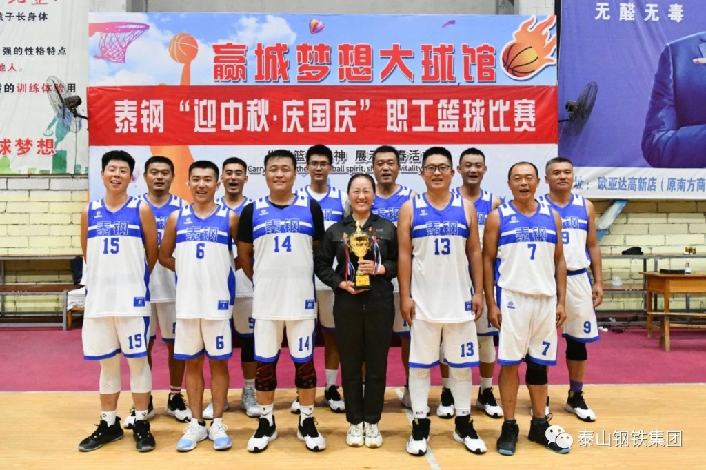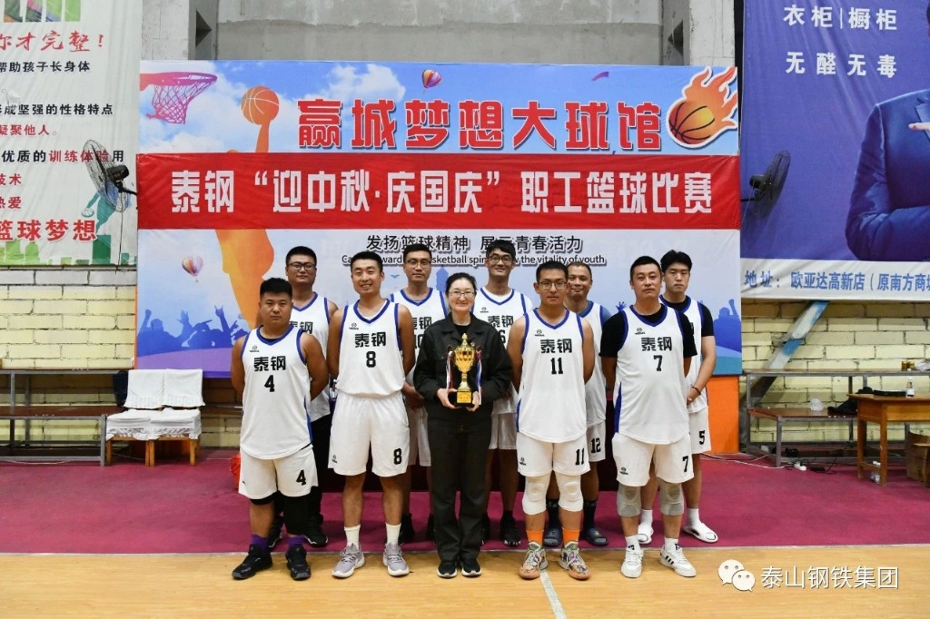 9月27日下午,泰山钢铁集团在赢城篮球馆举行了“迎中秋·庆国庆”职工篮球比赛决赛和颁奖仪式。集团党委书记、董事长王永胜出席活动。