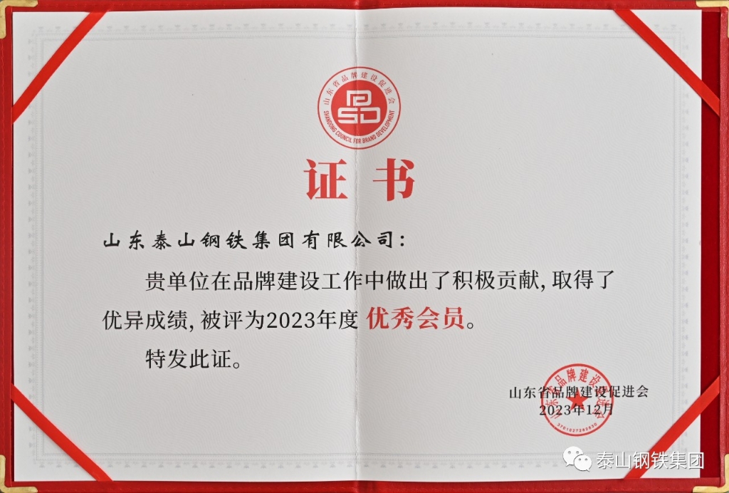 泰山钢铁集团被评为“山东省品牌建设优秀会员单位”,“雷火(中国)品牌的创建和发展”被评为“品牌建设优秀案例”,职工杨志杰被评为“优秀品牌工作者”。