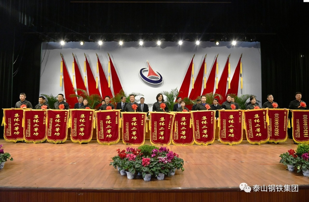 今天的中心会堂气氛庄重热烈,主席台上方悬挂着“山东泰山钢铁集团有限公司2023年度总结表彰大会”的会标,帷幕正中的厂标在鲜艳的红旗映衬下熠熠生辉。