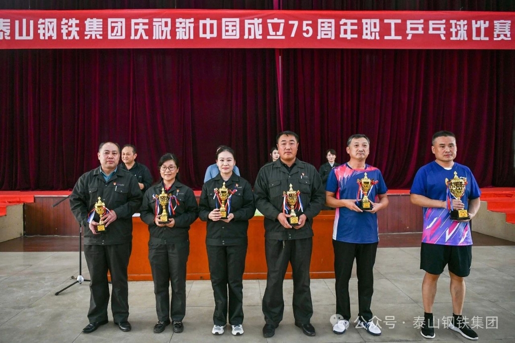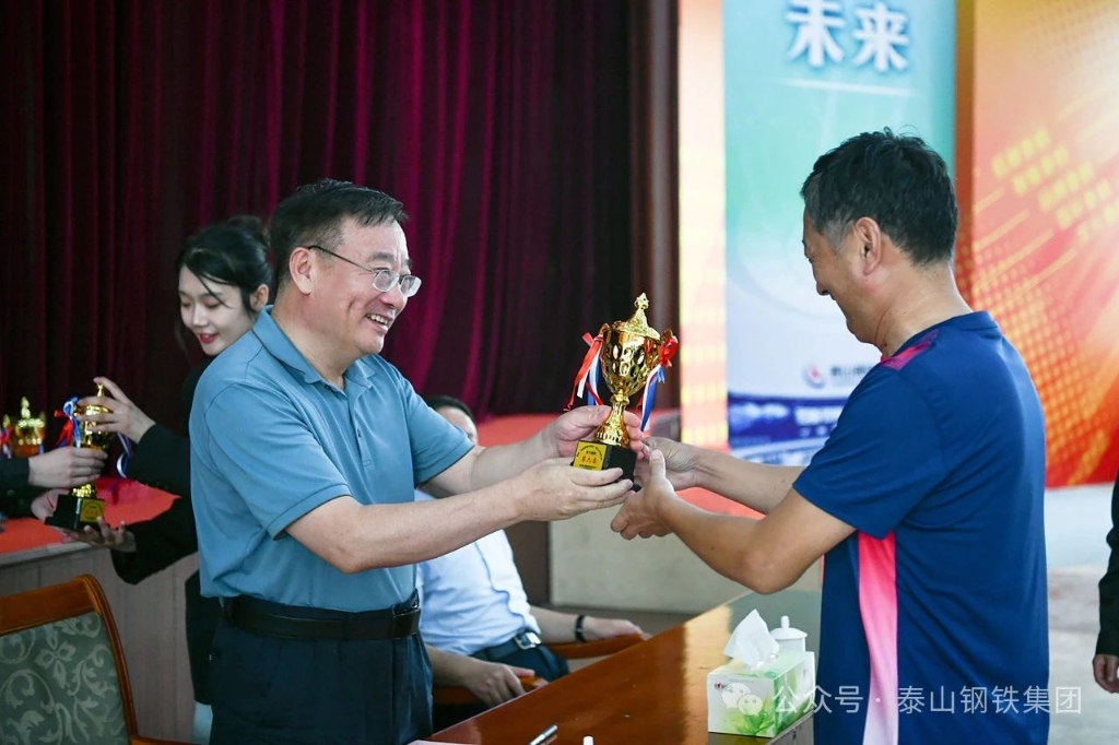 9月26日下午,泰山钢铁集团庆祝新中国成立75周年职工乒乓球比赛决赛在中心会堂举行。集团董事长、党委书记王永胜出席闭幕式,为获奖选手颁奖并发表了讲话。