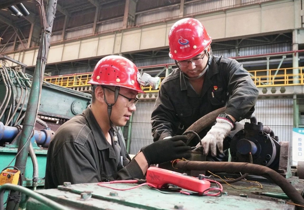 在集团不锈钢轧钢厂的生产一线,有这样一支队伍:他们以保障生产为己任,用一项项实际行动践行着共产党员的责任与担当。这,就是不锈钢轧钢厂党支部生产保障党小组。在一次炉卷主电机上辊电机更换任务中,由于外委维修人员对设备尺寸和参数不熟悉,现场需要技术人员进行专业指导。党小组成员房绪金毫不犹豫地站了出来:“现场我来盯着!”外委人员实行12小时轮班制,他却坚持24小时连轴转。当同事提出替换轮班时,他摆摆手说:“不用,现场情况你们不熟悉,换人反而耽误进度。”正是这份执着,让电机更换工作得以高效完成。电气设备故障排查难度大、处理复杂,对技术人员的专业素养和实践经验有着极高要求。为了帮助大家练就扎实的“硬功夫”,党小组不仅定期组织专项培训,还经常邀请外部专家来厂进行授课指导。针对青年职工实践经验匮乏的问题,小组成员们特意利用废旧设备搭建了一间“练兵室”,让年轻人在模拟操作中积累经验、提升技能。这一系列举措有效提升了团队的整体技术水平,并在实际工作中迅速得到了验证。此前,卷取炉电机控制变频器T400板损坏导致停机,可由于设备迭代,备件早已停产。面对如果无法修复,产线只能被迫改型的困境,党小组成员没有退缩。他们一边查阅相关的技术资料,一边进行拆解分析,经过一遍遍反复试验论证,最终从废旧设备中拆下同型号芯片,重新安装程序,让设备恢复了正常运转。