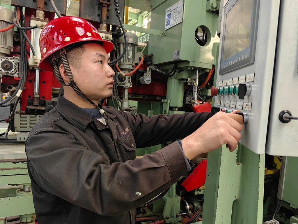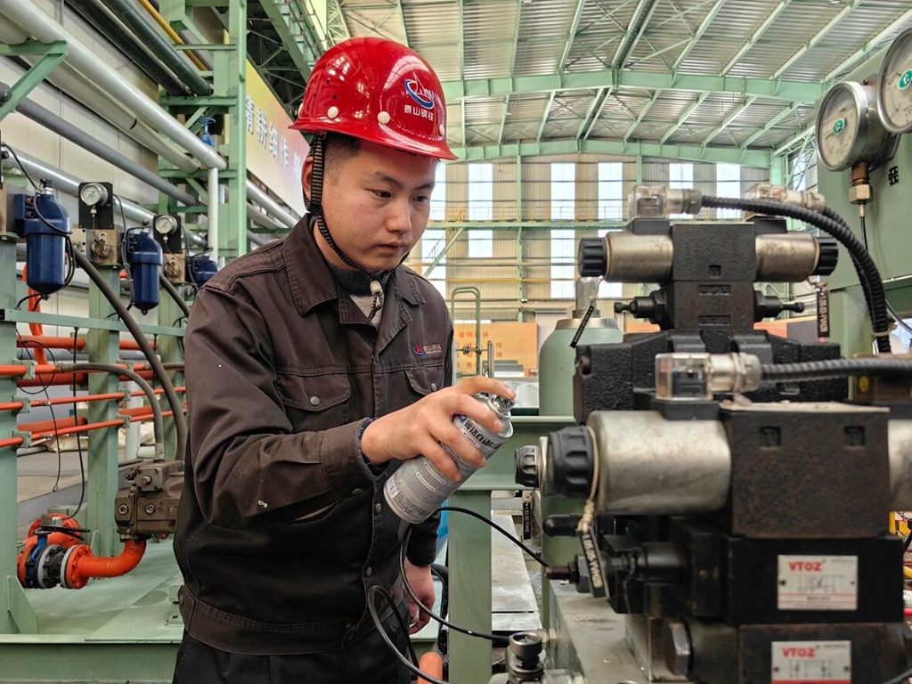 “设备正常运转,生产才能安全高效。”这是李光钊经常挂在嘴边的话,也是他多年来始终坚守的工作准则。冷退作业区作为生产流程中的关键环节,设备昼夜不停地运转,任何一点小异常都可能引发连锁问题。为此,李光钊养成了每天细致巡查的习惯。他对设备的轰鸣声、温度变化和振动频率都极为熟悉,凭借日积月累的经验和敏锐的观察力,总能第一时间发现潜在隐患。