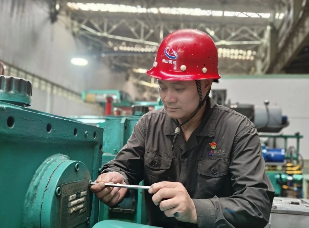 四年后,毛瑞峰再次接下重任,担任1700平整机机长。面对全然陌生的平整工艺,他没有丝毫退缩,而是主动为自己制定了一份“轮岗计划”。他沉下身子、放平心态,从零开始系统学习每个岗位的操作技巧与实战经验。那本密密麻麻写满数据和符号的笔记本,成了他的“工作宝典”。深入一线的扎实学习,让他迅速掌握了平整工序的全貌,对重点、难点问题了然于胸。在此基础上,他提出了“三个聚焦”工作目标:聚焦效率效益提升,在优化流程、挖掘潜能上做文章;聚焦生产痛点堵点,集中力量开展技术攻关;聚焦作业环境与本质安全,持续推进现场改善。在他的推动下,团队先后完成了开卷地沟平台改造、料尾收集装置衬板改造、2#上卷小车限位优化等多个创新项目,累计创效超过200万元。针对卷心擦伤问题,毛瑞峰通过对300多个钢卷的持续跟踪试验,创新发明了“T型撑”工装,通过将卷心撑起,使带钢紧密结合,再辅以点焊固定,彻底消除了卷心空隙,实现了产品降级率为零的重大突破。2024年,1700退火设备精度、出炉效率成为制约产量、质量和成本完成的瓶颈,职工思想波动大。关键时刻,厂部作出决定,安排毛瑞峰兼任 1700 退火机长,牵头破解这一困局。走马上任后,毛瑞峰没有急于调整生产,而是深入班组,和职工同坐一条板凳,动之以情、晓之以理,迅速摸清每名职工的思想。在全面掌握情况的基础上,他以解决职工急难愁盼问题为切入点,坚持把好事办实、实事办好、难事办妥,将思想工作真正做到了职工心坎上。1700退火主控工孙名伟这样评价:“看到毛机长每天都充满激情、干劲十足,时时处处冲在最前面,大家都被深深感染,谁也不愿拖机组后腿。”人心齐,泰山移。职工心气顺了、干劲足了,各项工作难题也逐步迎刃而解。党徽映初心,铁肩担使命。毛瑞峰把军人作风带到了火热的生产一线,用实实在在的行动,诠释了忠诚、担当、奉献的涵义。下一步,他将继续扎根平凡的岗位上,以扎实工作践行初心使命。